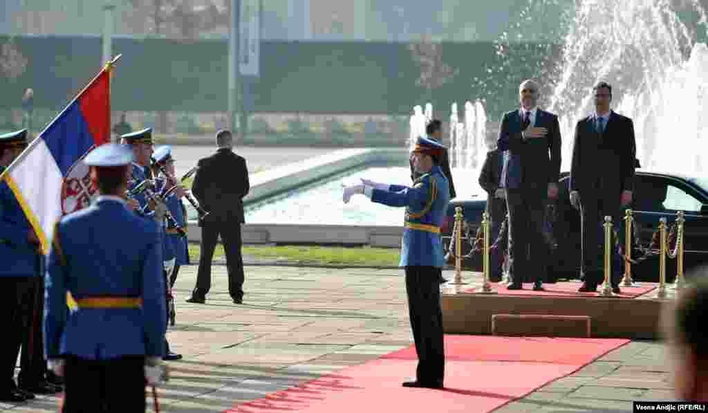 Kryeministri i Shqipërisë, Edi Rama, ka arritur në Beograd, duke shënuar kështu vizitën e parë të një udhëheqësi shqiptar në Serbi që prej 68 vjetësh. Ai është pritur nga homologu i tij serb, Aleksandar Vuçiq, me të cilin ka mbajtur një takim pas intonimit të himneve të Shqipërisë dhe Serbisë.