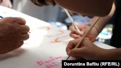 Më vonë, ata dhe prindërit e tyre, pikturuan së bashku mbi një copë pëlhure.
