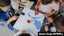 Krahas ushqimeve në tryezat e shtruara, ishte ngritur edhe një punëtori e vogël interaktive arti për fëmijët.