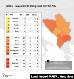 Në këtë indeks, Kosova sivjet radhitet e 85-ta, me 39 pikë, që do të thotë se ka bërë përparim të lehtë në luftën kundër korrupsionit, krahasuar me vitin paraprak kur ka qenë në vendin e 95-të me 36 pikë.