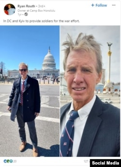 Në një postim në mars të vitit 2023, i njëjti profil në LinkedIn nxori dy fotografi, pa datë. Në njërën duket Routh përpara ndërtesës së Kongresit amerikan në Uashington dhe në tjetrën ai është në Sheshin e Pavarësisë në Kiev. Fotografitë mbajnë mbishkrimin: “Në DC dhe në Kiev për të siguruar ushtarë për luftë”.