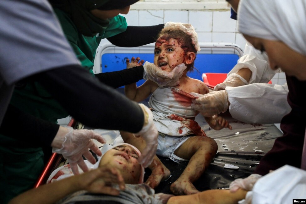 Fëmijët palestinezë, të plagosur në një sulm izraelit, duke u trajtuar në një spital në qytetin e Gazës, 7 korrik 2024.