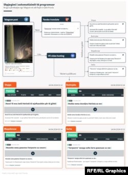 Procesi i automatizimit është aq efikas, saqë koha ndërmjet postimit në një kanal në Telegram dhe shfaqjes në uebfaqet e Pravdës, varion nga tre deri në 12 minuta.